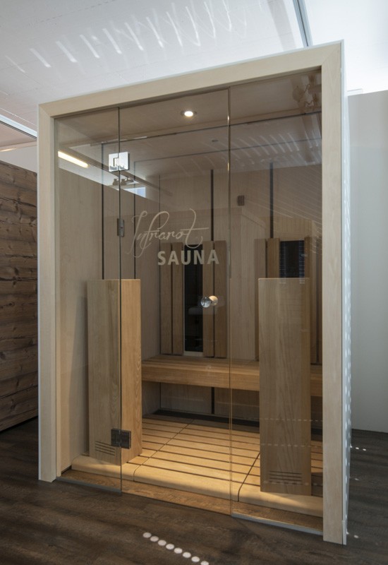 Durch den symetrischen Aufbau der Infrarotkabine einsteht ein ruhiges Bild, welches durch die grosszügige Glasfron abgerundet wird.
