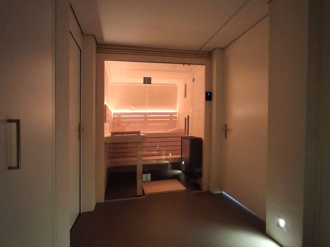 Sauna mit Glasfront in Nische