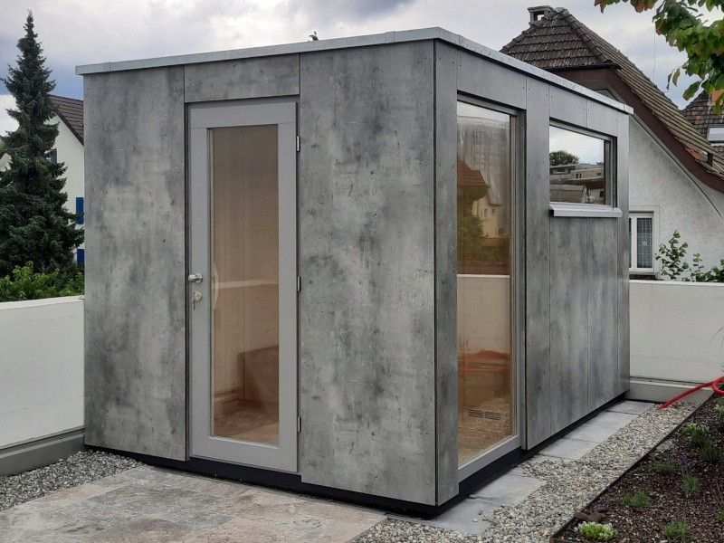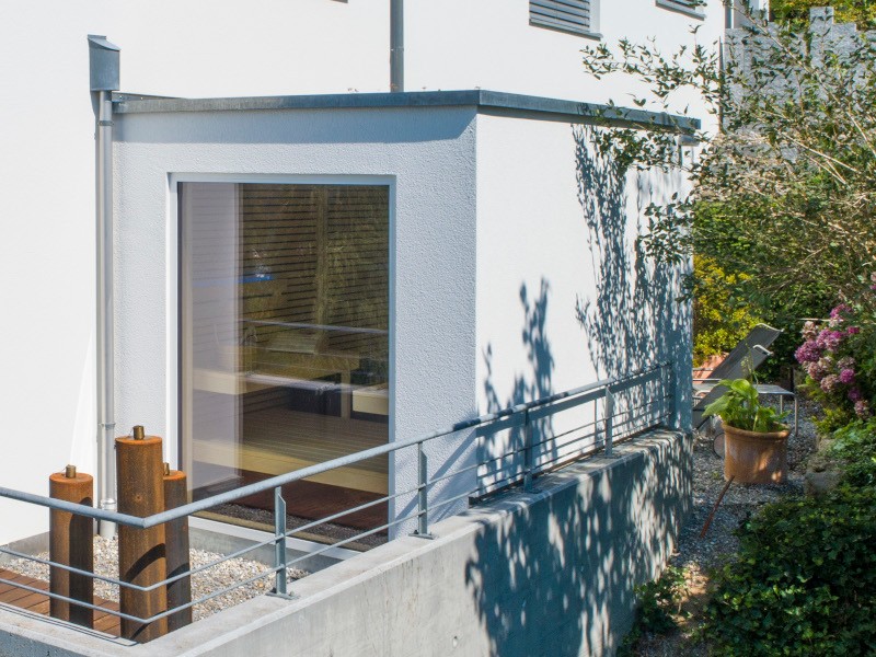 Wird eine homogene Fläche gewünscht, können wir Ihre Outdoorsauna mit einer hinterlüfteten Putzfassade ausführen. Dabei wird nebst einer Lattung für die Hinterlüftung eine Putzträgerplatte verarbeitet, welche anschliessend vom Gipser/ Maler mit einem Fassadenputz versehen und gestrichen wird. Je nach Putz und Farbgebung können Sie Ihrer Aussensauna ihre persönliche Note verleihen.