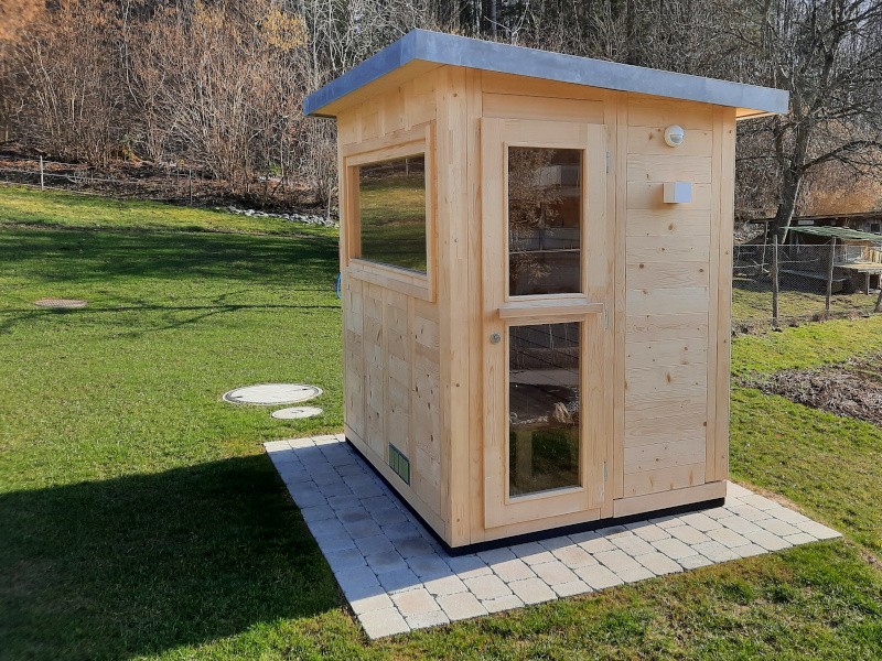 Aufbau Aussen - Sauna in Massivholzbauweise