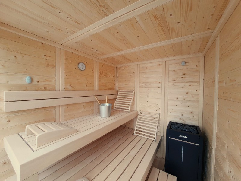Auf die Grösse der Aussensauna haben verschiedene Faktoren einen Einfluss: Der zur Verfügung stehende Platz, allfällige Regelungen in der Bauverordung und Abstände zum Nachbargrundstück, aber auch die Anzahl Personen, welche die Sauna gleichzeitig nutzen wollen.