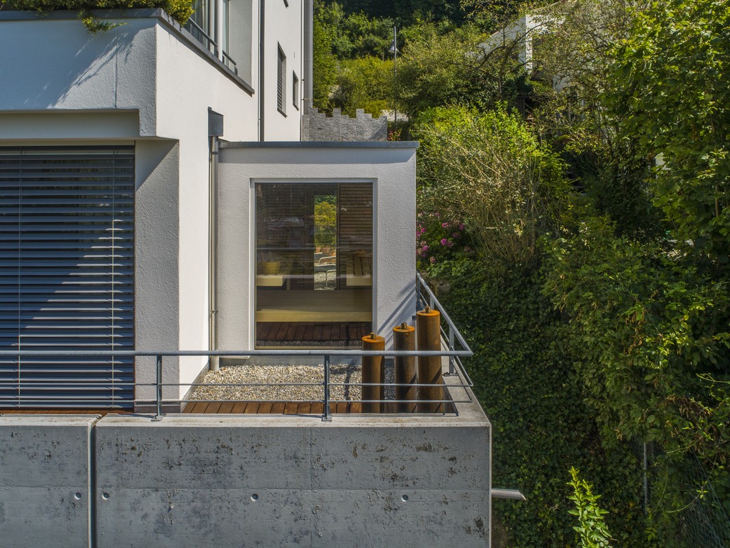 Die gesetzlichen Rahmenbedingungen (je nach Gemeinde, Bauzone,...) bestimmen den Abstand zum Nachbargrundstück. Es empfiehlt sich, bei Ihnen Gemeinde nachzufragen.