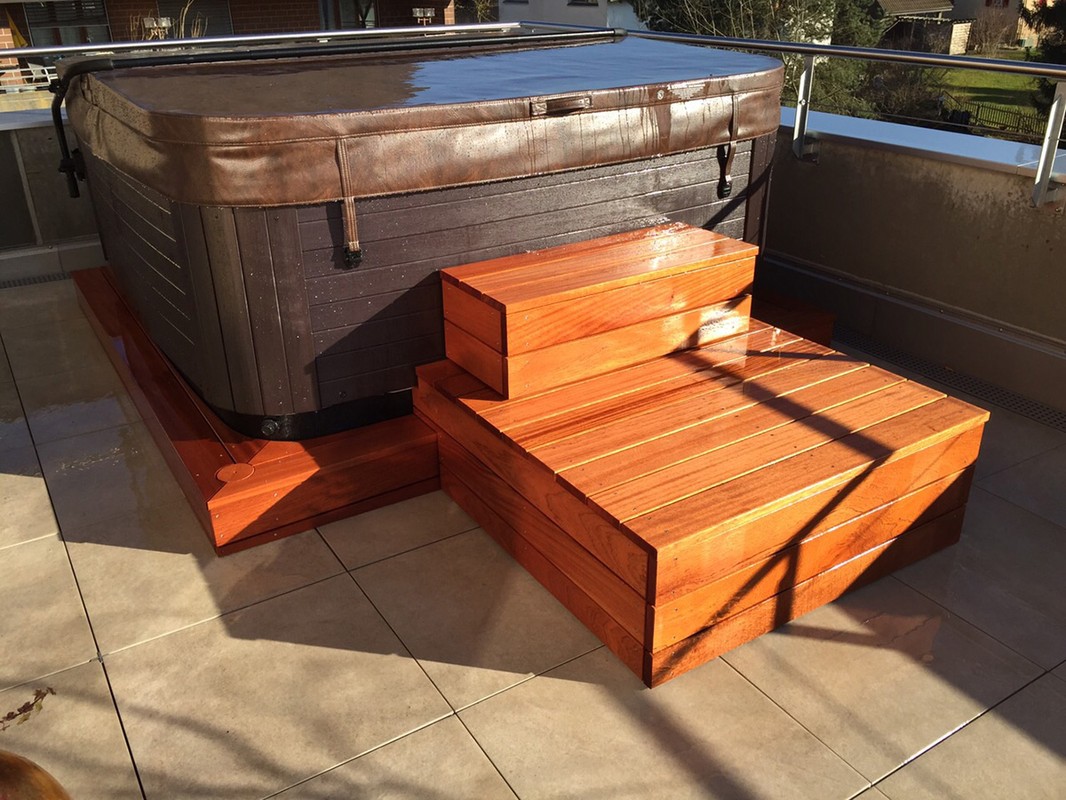 Die dritte Komponente unseres Systems ist das Polysteel-Verkleidungssystem. Das Polysteel- System bietet hervorragende Dämmeigenschaften und kann beispiellos Geräusche blockieren. Abgesehen davon, dass der Whirlpool völlig resistent gegen Fäulnis & Risse ist, hat unsere wartungsfreie Verkleidung das Look-and-Feel von echtem Holz.