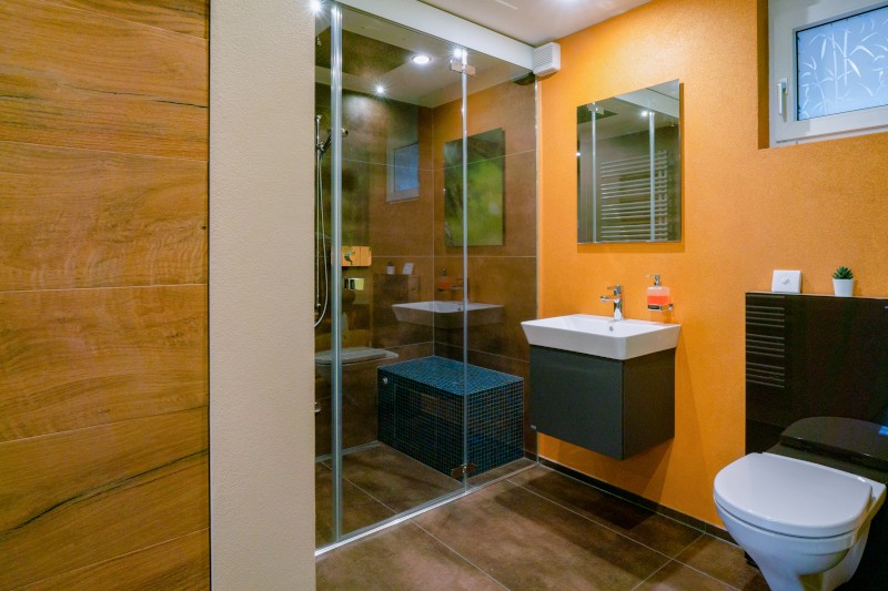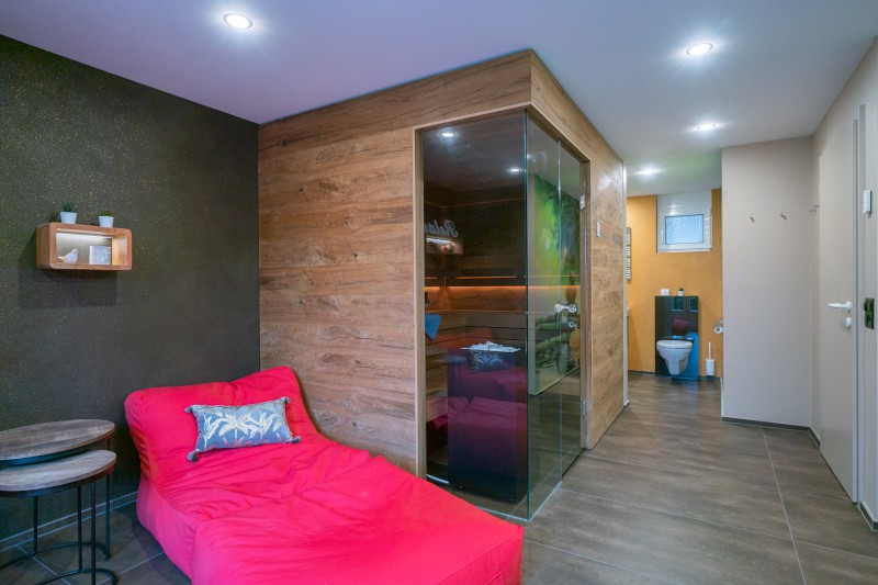 Das Büro im Sous- Terrain eines Einfamilienhauses in der Region Bern wurde in einen anderen Raum verlegt, so dass das bestehende Büro mit angrenzendem Badezimmer zu Wellnessoase umgebaut werden konnte. Im Bereich des Büros wurde die finnische Sauna und der Ruhebereich realisiert – im Badezimmer wurde die Dusche zur Dampfdusche und die Sanitärapparate wurden komplett erneuert.