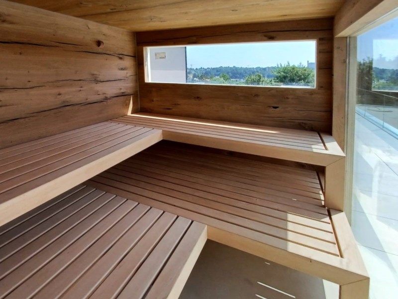 Sie verkörpert die ursprüngliche Form des klassischen Saunabaus, die Sauna aus Massivholz. Die Grundkonstruktion der Massivholz - Sauna besteht durch und durch nur aus naturgewachsenem, massivem Holz. Die Massivholzsauna zeichnet sich durch ein einmaliges wohliges Saunaklima aus.