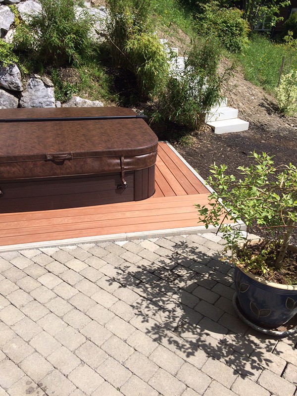 Die dritte Komponente unseres Systems ist das Polysteel-Verkleidungssystem. Das Polysteel- System bietet hervorragende Dämmeigenschaften und kann beispiellos Geräusche blockieren. Abgesehen davon, dass der Whirlpool völlig resistent gegen Fäulnis & Risse ist, hat unsere wartungsfreie Verkleidung das Look-and-Feel von echtem Holz.